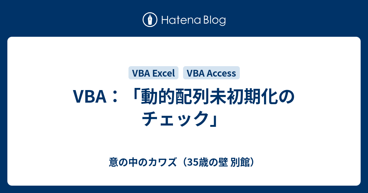 Vba 動的配列未初期化のチェック 意の中のカワズ 35歳の壁 別館